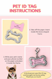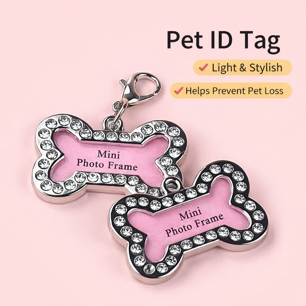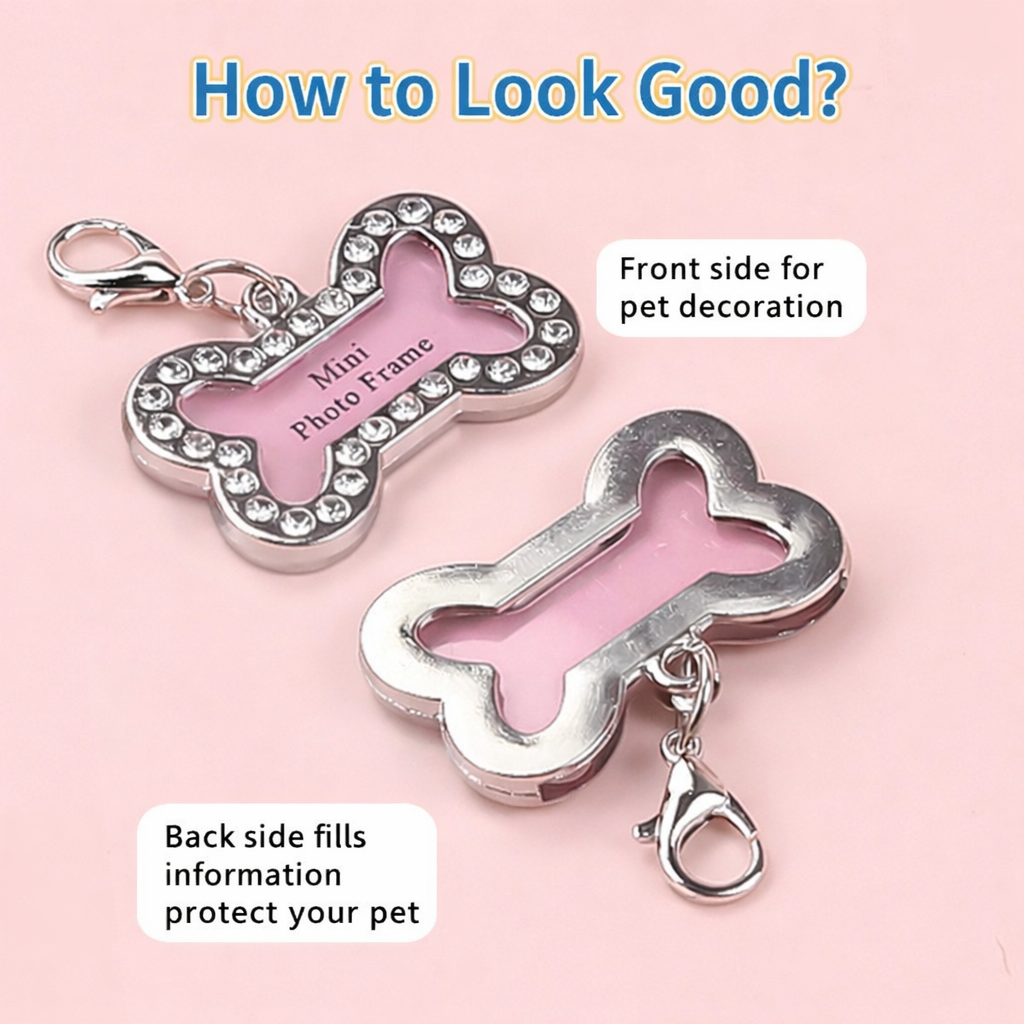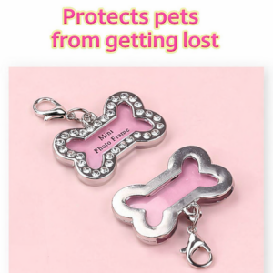 Designed in a charming bone shape, this tag features a mini photo frame that allows you to place your pet’s name and contact number inside for easy identification.