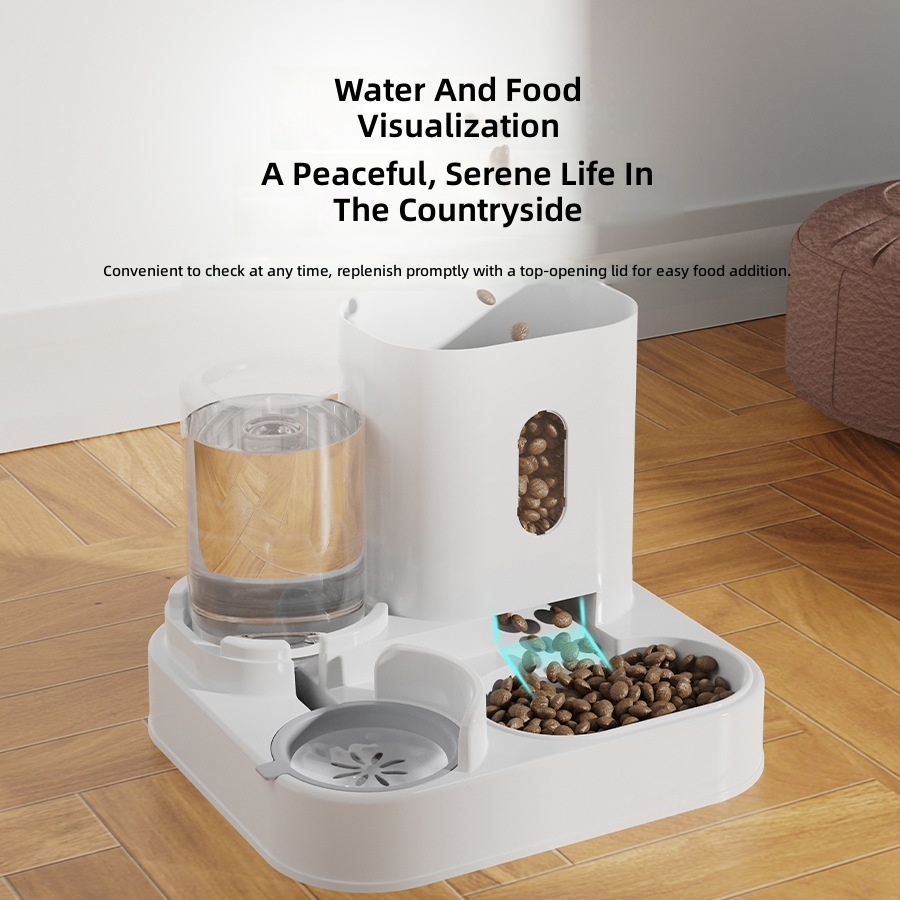Cat Water Fountain & Automatic Food Feeder Combo – Integrated Water Dispenser with Flowing, Circulating Water for Cats