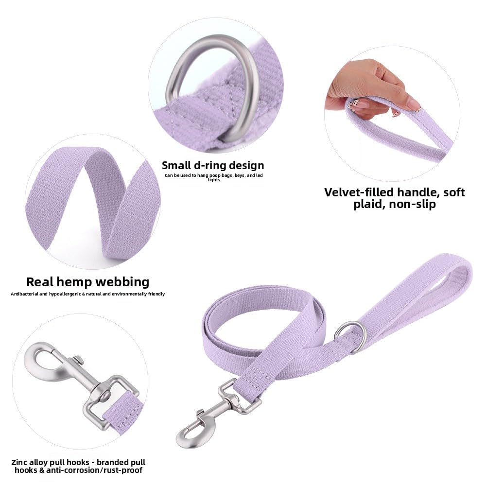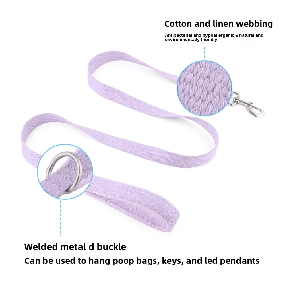 Made from high-quality cotton-linen webbing, this dog leash is breathable, moisture-absorbing, and environmentally friendly.The fabric maintains its shape well and offers a clean, stylish appearance for everyday walks. Features a double-layer reinforced handle with soft inner padding.Gentle on hands, non-slip, and comfortable to hold, even during long walks or when dogs pull suddenly. Equipped with a corrosion-resistant zinc alloy metal clasp that provides strong pulling resistance.Secure and reliable for daily use, helping keep your dog safely connected at all times. Built-in small D-ring near the handle allows easy attachment of poop bag holders, keys, LED lights, or other lightweight accessories for added convenience during walks. High-density stitching at stress points improves durability and wear resistance.Designed to handle active dogs and daily outdoor use with confidence.