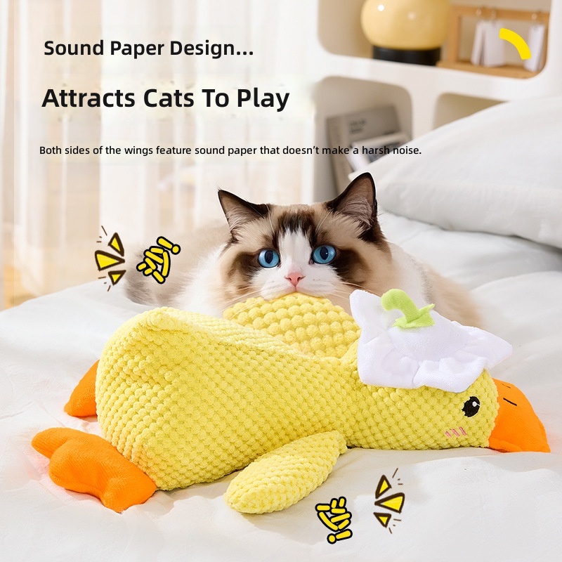 Little Yellow Duck Cat Toy Plush Rattling Paper Sound Toy Cat Self-Pleasure to Relieve Boredom Sound Catnip Toy Wholesale Cross