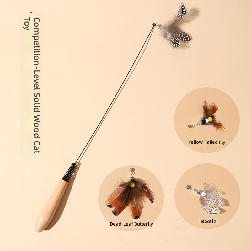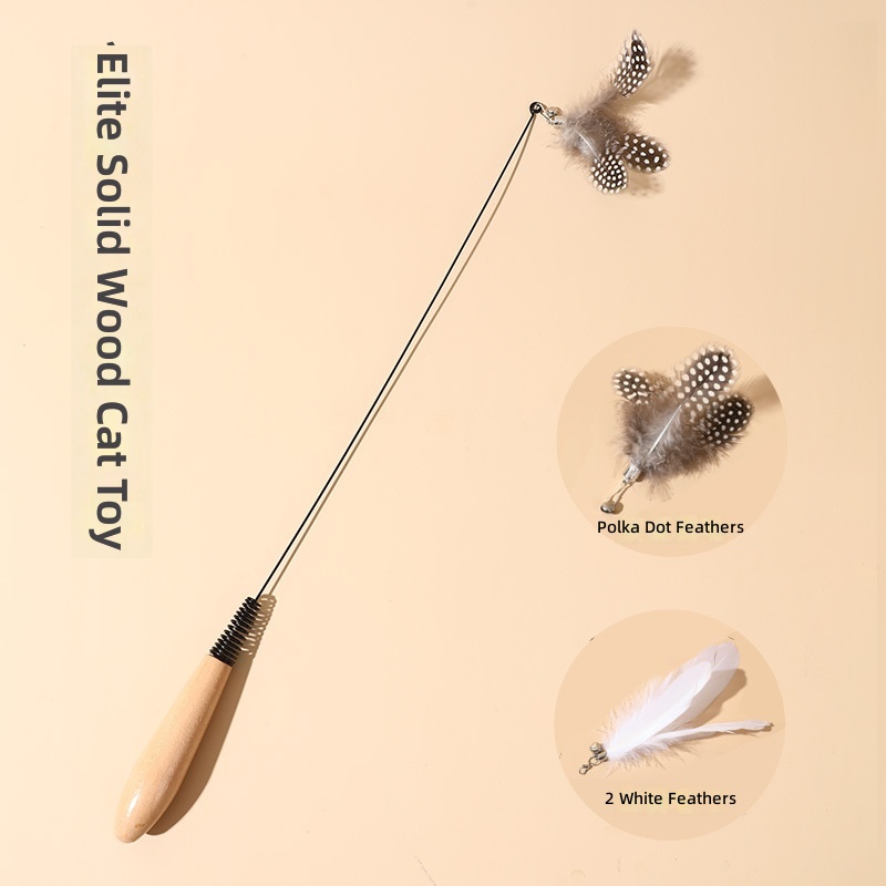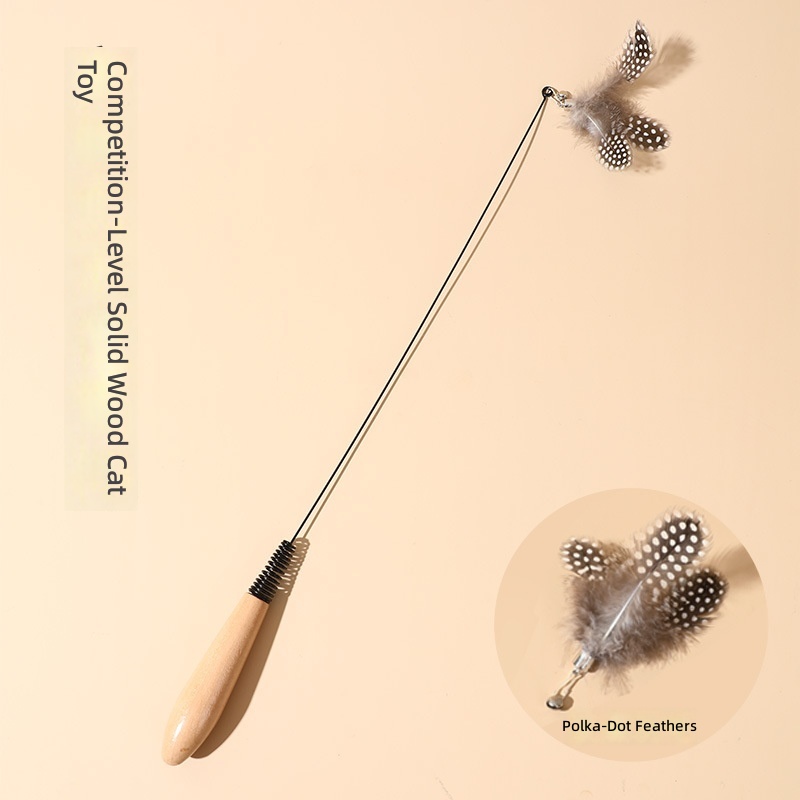 Spring wooden handle cat teaser stick