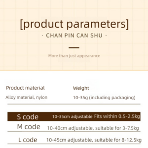 | S: 1–5 lbs (12–35cm); M: 6–15 lbs (12–40cm); L: 16–25 lbs (12–45cm) |