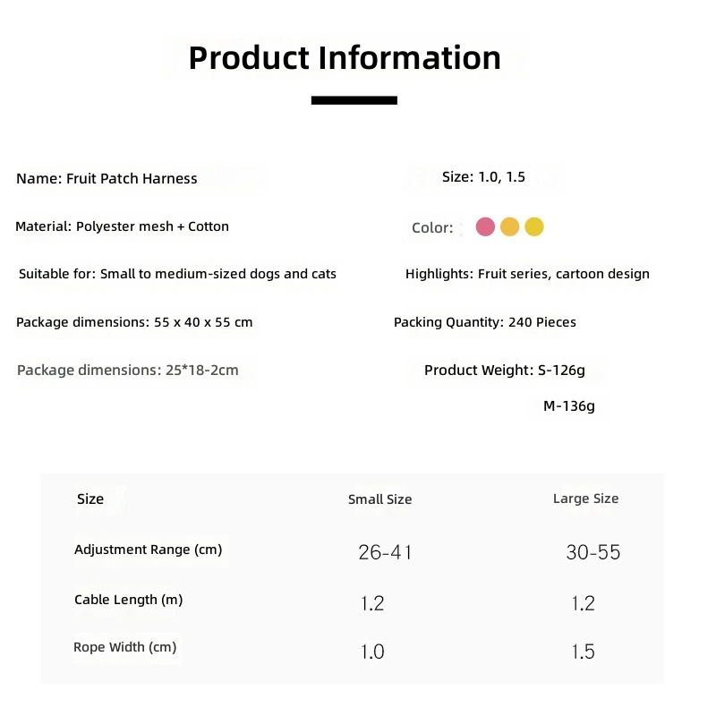 Small and medium-sized out dog traction safety rope fruit series dog walking rope dog rope cat traction rope